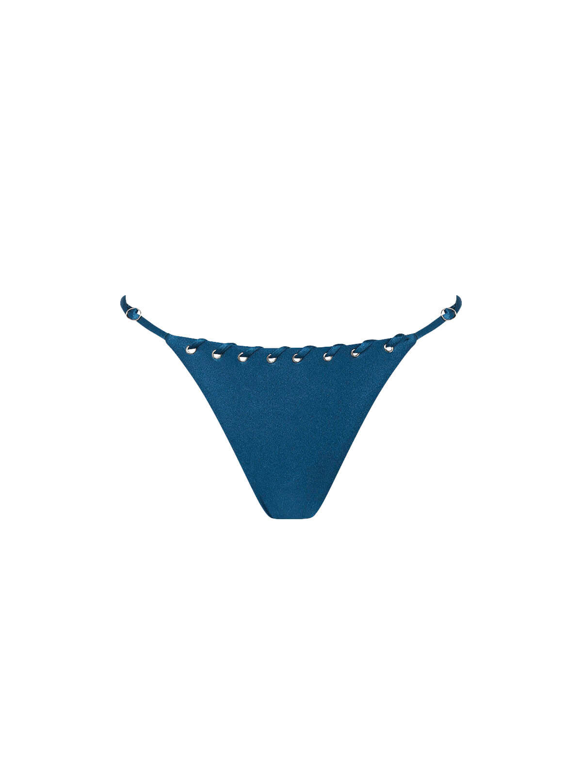 Este bikini destaca por sus ojalillos metálicos, un detalle sutil que eleva el look con un aire sofisticado. Confeccionado en lycra brillante que atrapa la luz y resalta el tono de piel, su top se puede ajustar y usar de distintas maneras, adaptándose a tu estilo y el bottom es regulable para que se amolde a ti.Una pieza pensada para destacar de manera ‘effortless’.