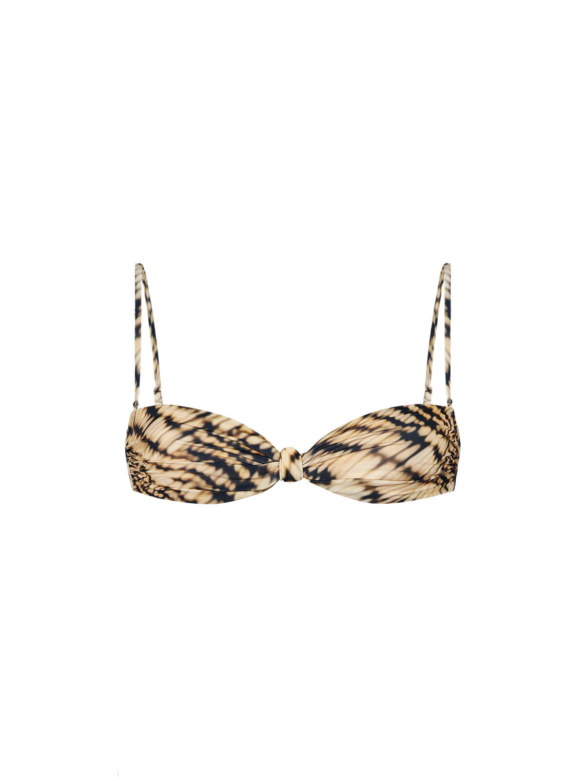El nudo en el centro aporta carácter y estructura, mientras que las tiras removibles permiten llevar el top como strapless según el mood o la ocasión. El bottom es regulable para un ajuste a medida. Los prints, exclusivos de la marca y diseñados por nosotras, hacen de esta pieza una obra de arte.