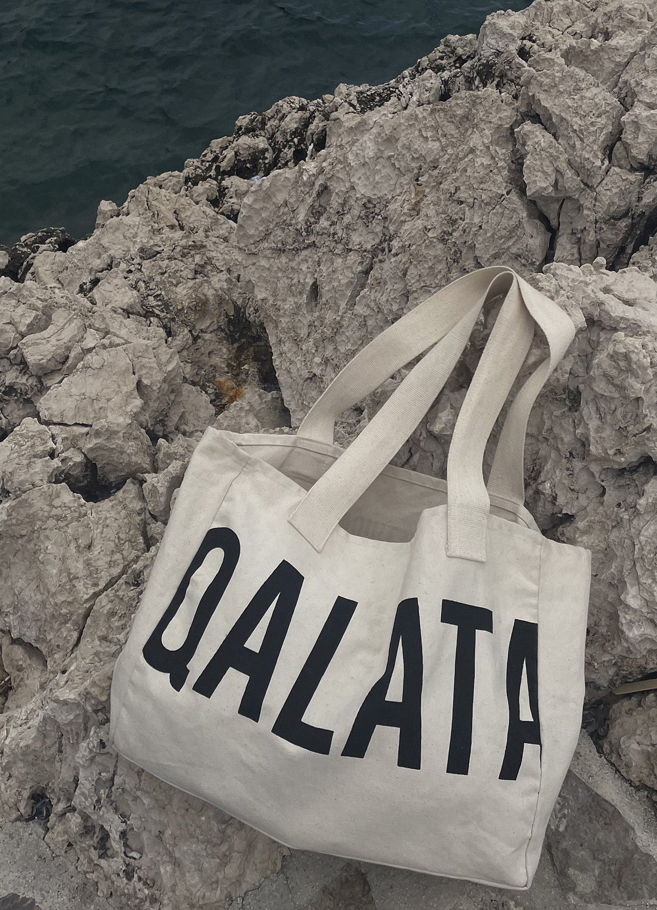 - “Qalata” logo and “Ethically made in Lima, Peru” printed in black