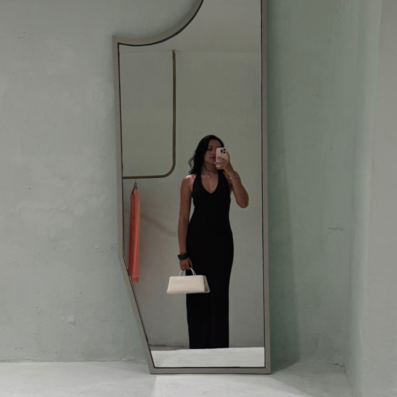 Fluid elegance with an unexpected twist. This fitted dress stands out with its halter neckline and streamlined silhouette. Its signature detail: a draped sash with a buckle, which you can wear as a belt or drape over your shoulders for a more ethereal look. Versatile, sophisticated, and absolutely unforgettable.