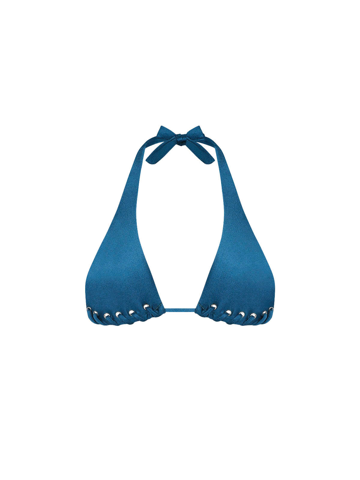 Este bikini destaca por sus ojalillos metálicos, un detalle sutil que eleva el look con un aire sofisticado. Confeccionado en lycra brillante que atrapa la luz y resalta el tono de piel, su top se puede ajustar y usar de distintas maneras, adaptándose a tu estilo y el bottom es regulable para que se amolde a ti.Una pieza pensada para destacar de manera ‘effortless’.